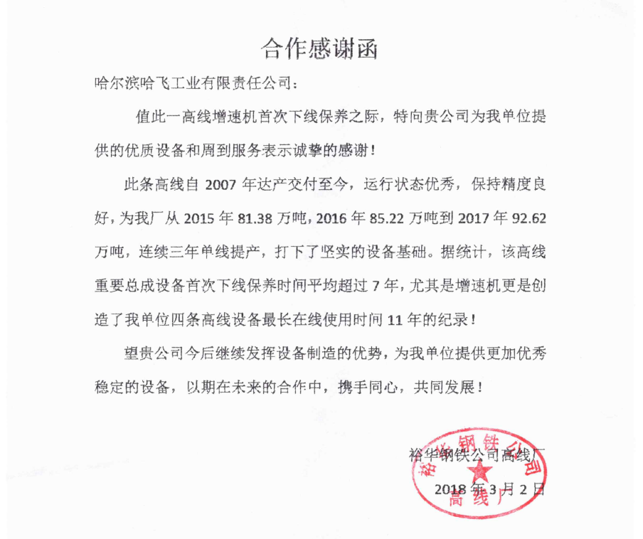 哈爾濱哈飛工業(yè)有限責(zé)任公司旗下的機(jī)電設(shè)備制造產(chǎn)業(yè)是目前國內(nèi)規(guī)模大、專業(yè)的高速線材軋機(jī)和棒材軋機(jī)整機(jī)及備件的生產(chǎn)制造企業(yè)。公司現(xiàn)坐落于哈爾濱市平房區(qū)汽車零部件工業(yè)園B區(qū),占地面積30000多平方米。現(xiàn)有員工近550人,其中具有中高級職稱的研發(fā)及工程技術(shù)人員100余人。 公司曾獲得冶金部授予的“高線軋機(jī)設(shè)備優(yōu)單位”稱號、國家技術(shù)進(jìn)步二等獎等獎項(xiàng),公司生產(chǎn)的十八項(xiàng)高線軋機(jī)重要部件通過了技術(shù)鑒定... +MORE